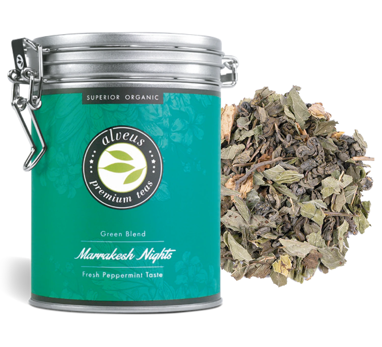 Ingredienti: Tè verde China Gunpowder* (54 %), menta piperita intera*, menta verde*, menta piperita*.